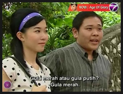 So, as i was watching.... there's this scene da leading lady in da drama was selling tau fu fa, and there's 2 people buying it. She was asking da customers if there want it in coconut sugar or normal sugar. Then there's this keh leh feh guy answer: ' Ye tang.' (coconut sugar)